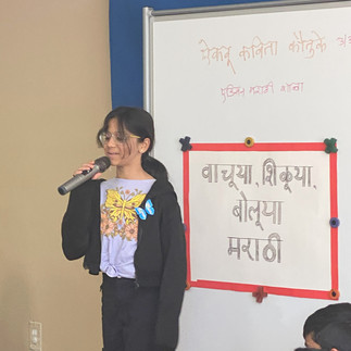 कविता सादरीकरणाच्या कार्यक्रमाला दिलेल्या उत्तम प्रतिसादाबद्दल सर्व पालकांचे आभार! कार्यक्रमात एकूण ४३ विद्यार्थ्यांनी भाग घेतला. कविता निवड तर छान होतीच, पण सादरीकरणही सर्व मुलांचे फार सुंदर झाले. कौतुकाची गोष्ट अशी की, मुलांना कविता ऐकायला आवडल्या, समजल्या.